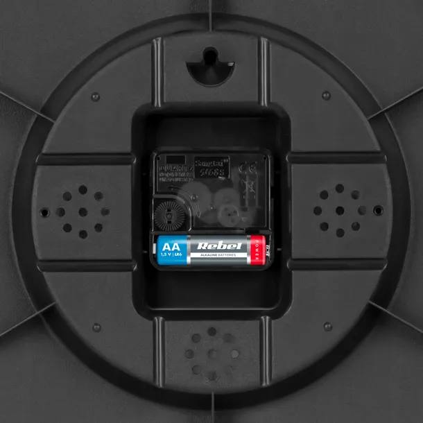 Zegar zasilany jest za pomocą standardowej baterii AA, co sprawi, że jest wyjątkowo łatwy w użytkowaniu. Brak przewodów sprawia, że można go umieścić w dowolnym miejscu – wystarczy zawiesić go na ścianie, wykorzystując praktyczny otwór montażowy. Energooszczędny mechanizm pozwala na długotrwałą pracę na jednej baterii, minimalizując konieczność częstej wymiany.